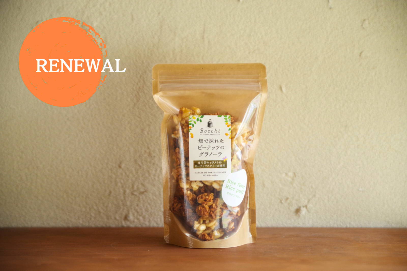 ピーナッツを余すことなく使い切る、"フードロス"をめざし、試行錯誤を経て生まれたグラノーラ。たっぷりのキャラメルとピーナッツの香ばしさが相性抜群、そして安心な完全グルテンフリー、ライスパフのサクッと感も楽しめる…とっておきのBocchiのグラノーラへ。